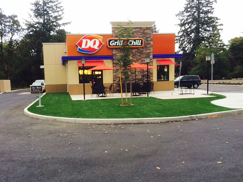 Our fake grass for landscaping is water conserving, maintenance cost reducing and perfect any climate! Our products are a pet-friendly commercial landscape design solution that eliminates yellow and brown grass stains found in organic sod. It provides a clean commercial landscaping surface, keeping the indoors free of tracked in dirt and mud that generally accompany a natural, sod commercial landscaping lawn.