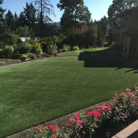 Removal of over 6,000 sq ft of natural lawn. The homeowners were tired of a having such a beautiful property wasted by essentially swamp like conditions. We worked directly with Aspen Creek Landscaping to create another low maintenance beautifully landscaped yard with a putting green. This house is now ready for year round entertaining!